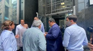 Las deportistas Angelina Espinosa, Leidy Olivera, Tatiana Aranda, Camila Rodríguez, Lourdes Fagundez, Valentina Acosta, Florencia Tejera y Micaela Rodríguez, junto a la presidenta de las Olimpíadas Especiales de Uruguay, Aurora Saroba, recibieron el pabellón nacional por parte del presidente, con quien compartieron experiencias de otras competencias y de lo que implica participar de este evento.